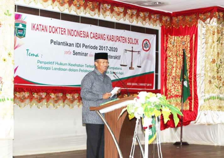 Harapan itu ternyata sama adanya dipikiran Gusmal,SE,MM, Bupati Kabupaten Solok, yang ia utarakan usai pelantikan IDI (Ikatan Dokter Indonesia) Periode 2017 – 2020, di Ruang Pelangi Kantor Bupati Solok, Sabtu (3/3/2018).