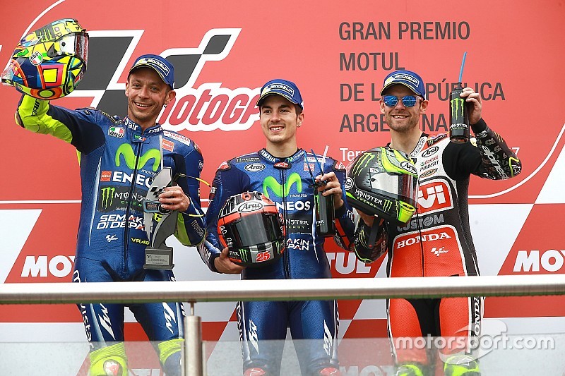 Hariankutim.com – Maverick Vinales dan Valentino Rossi berhasil menjuarai seri MotoGP Argentina di Sirkuit Termas de Rio Hondo pada Senin dini hari 10 April 2017. Keduanya juga memimpin perolehan angka di klasemen sementara.