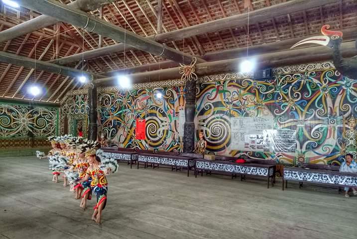 Lamin atau Serapuh disini terlihat berdiri sangat kokoh dengan pondasi bangunan keseluruhan dari kayu pohon ulin. Seluruh dinding Lamin dilukis dengan ornamen suku Dayak dan ada beberapa patung pahat yang sengaja ditaruh di dalam Lamin. Di dalam bagian utama gedung terdapat bangku-bangku panjang yang digunakan untuk para tamu yang akan mengikuti musyawarah maupun penonton yang akan menyaksikan pagelaran seni. Selain terdapat pilar-pilar ukir penyanggah bangunan terdapat juga patung burung enggang tergantung tepat ditengah-tengah bagian utama.